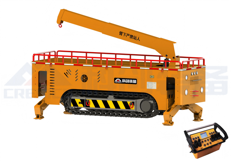 目前掘進作業(yè)中,受巷道空間條件所限,膠輪車等運輸車輛只能把輔助材料運到距離迎頭 50 米處,然后 由人工推、拉、扛等方式把物料卸到迎頭位置,長期以來無法實現(xiàn)機械化運輸輔材,該工藝工人勞動強度大, 工作效率低,安全隱患多。減輕職工勞動強度,提高人工效率,改善作業(yè)環(huán)境,探索無人化或少人化輔助運輸 技術(shù),成為急需解決的問題。